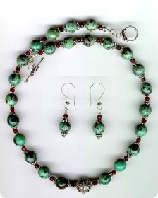 rouge et d'argent pour la parure bracelet, boucles et collier.